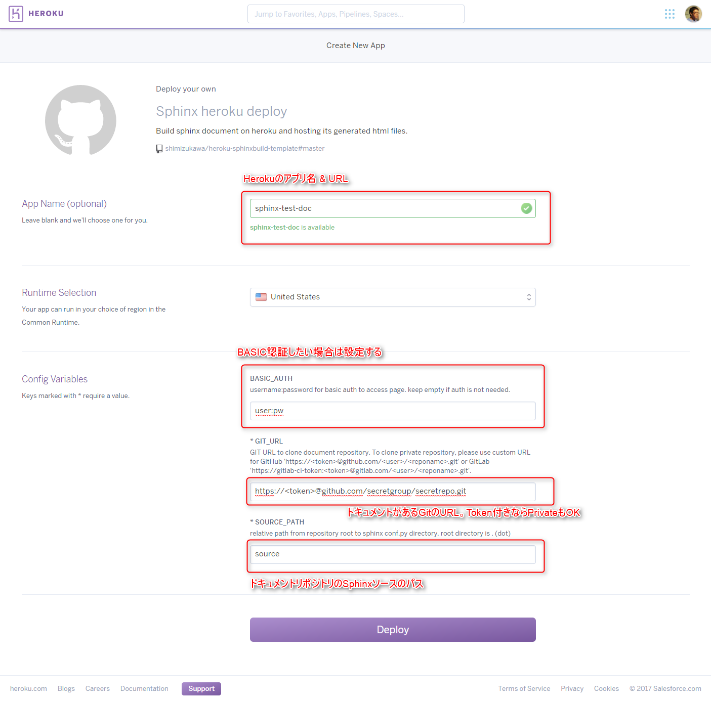 先日、 SphinxドキュメントをHerokuにBasic認証付きでホスティングする というBlogを書きました。今日は、これをもうちょっと楽に使えるようにカスタマイズしました。