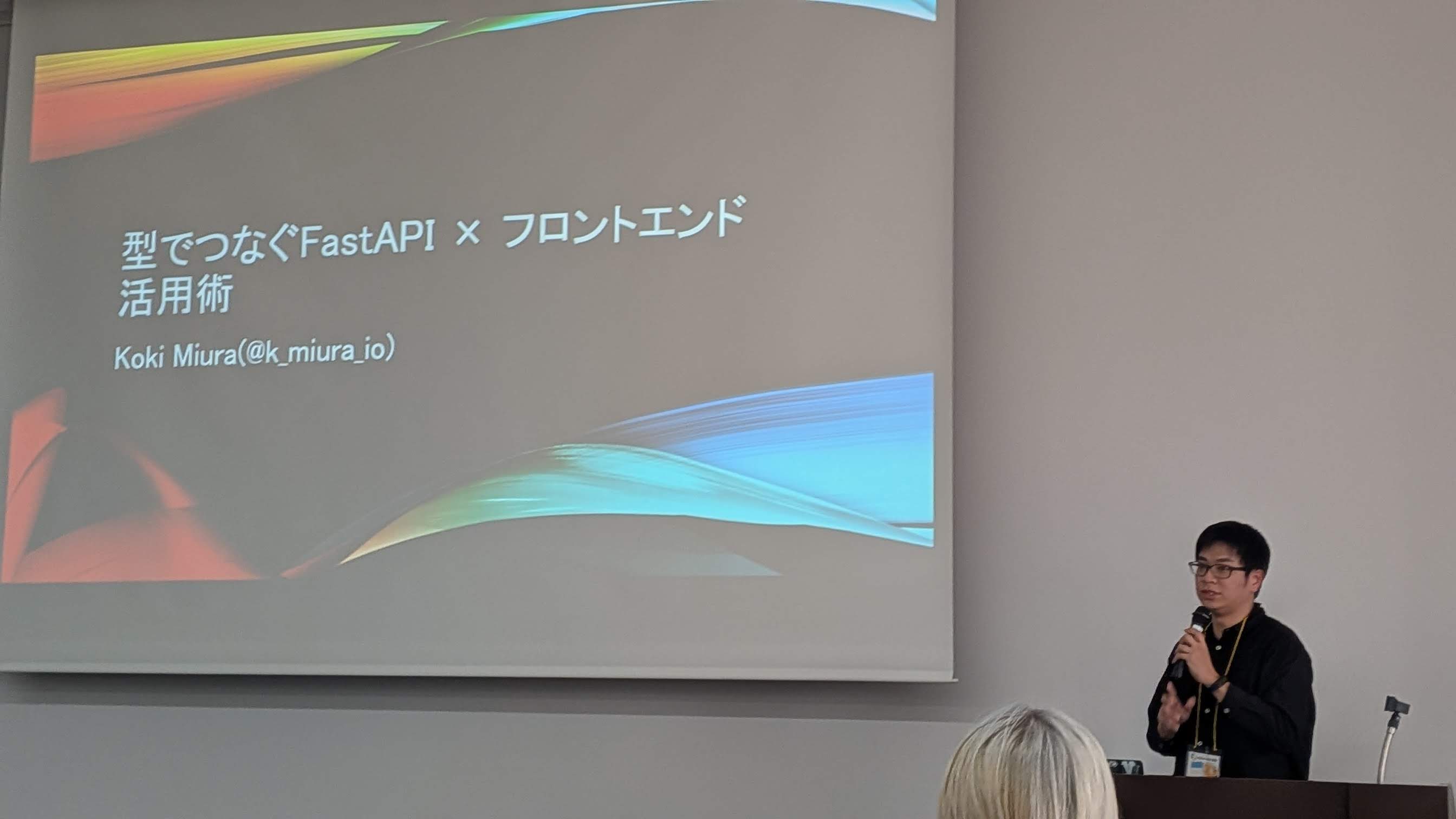 Miuraさんのトークは、FastAPIとフロントエンドの連携でした。名古屋のPython勉強会 鯱.py の運営もされている方です。