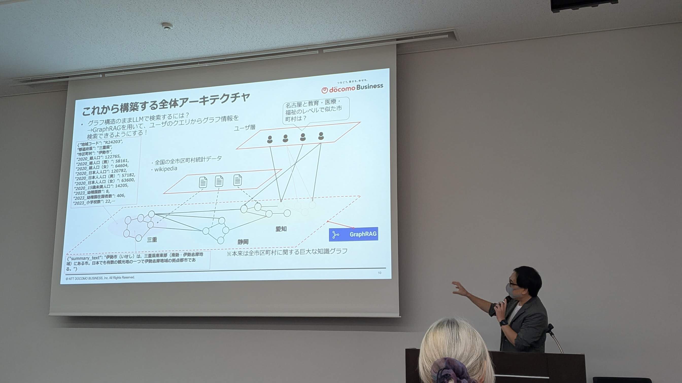 丹野さんのトークは、GraphRagを用いた意味的地域検索への応用でした。